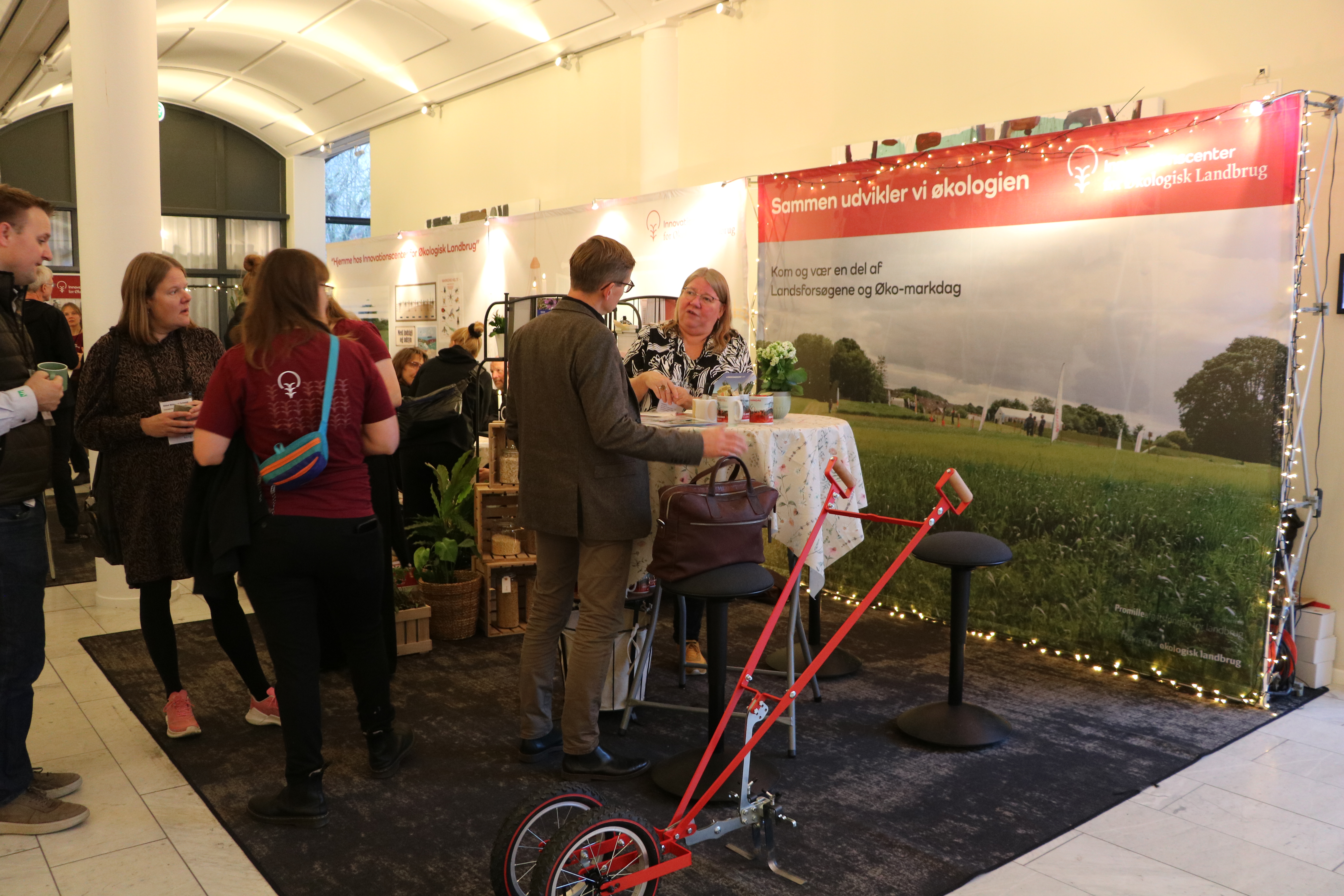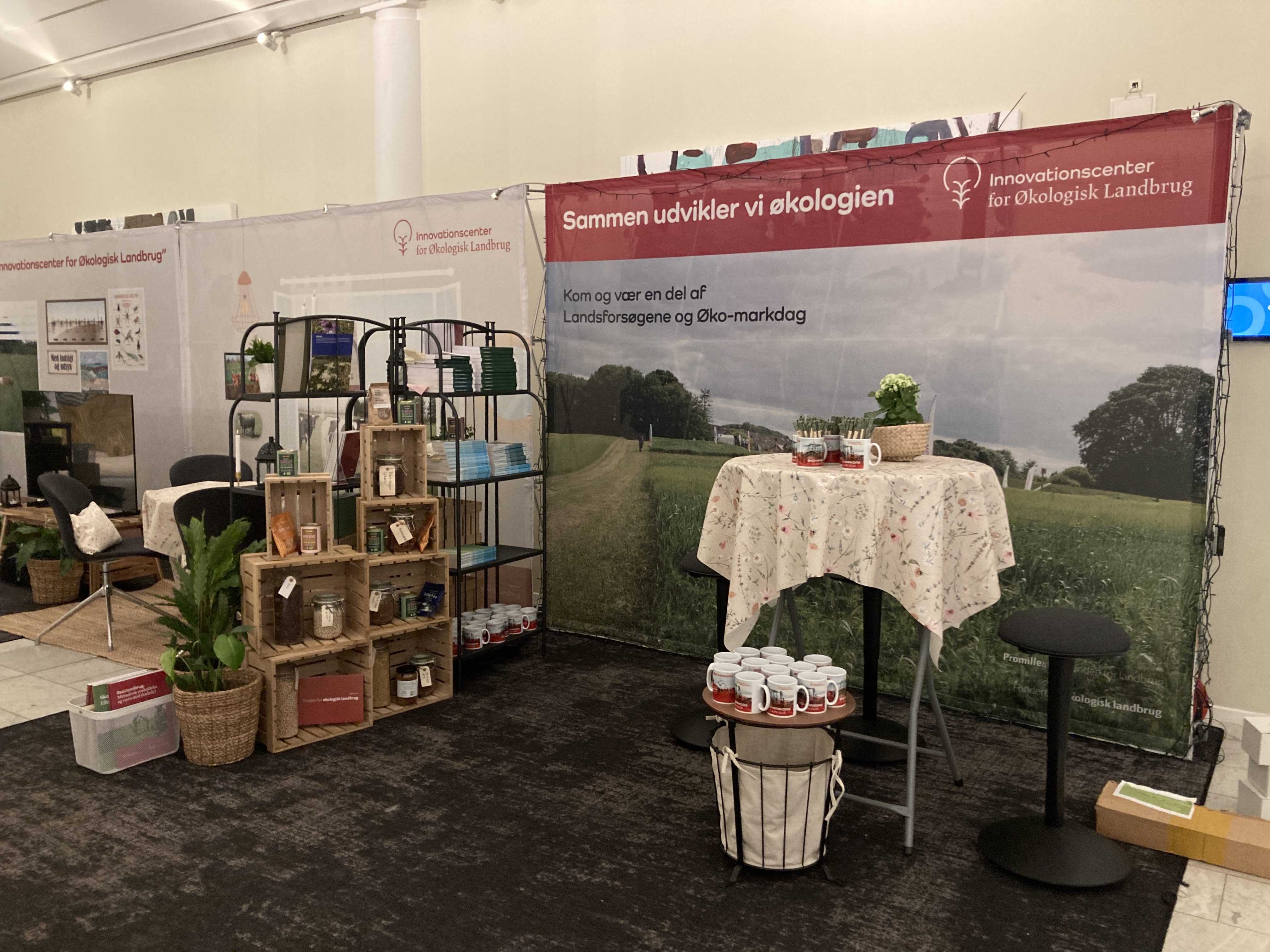 Billede af bemandet stand. Bemandet Øko-markdag stand på Økologikongres 2025.